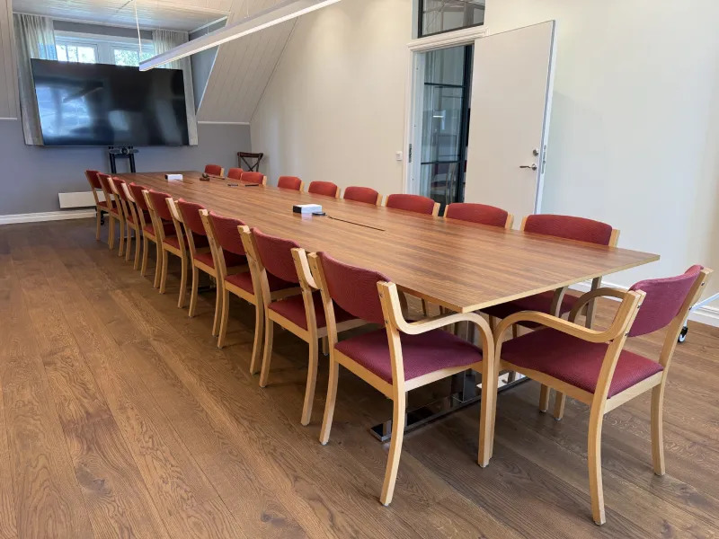 Styrelserummet är en perfekt plats för möten där samtalet står i centrum. Plats för 20 personer runt det stora konferensbordet. Fick någon nyckelperson plötsligt förhinder att närvara fysiskt? Inget problem. Maxad bildskärm och videokonferensutrustning räddar situationen.